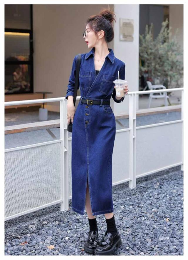 | オールシーズン着用できる、カジュアルコーデの定番アイテム、ロングデニムワンピースです。 上品なデザインが女性らしさを演出し、これからの時季フォーマルな場面にも活躍できる。 スリットデザインが全体のおしゃれ度がアップ! 上品さと可愛らしさを兼ね備えて一枚でおしゃれに見えます。 | |