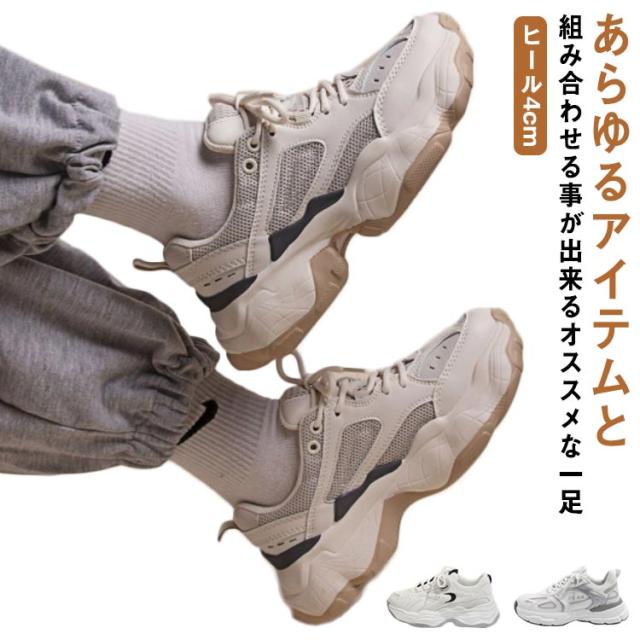 ダッドスニーカー 厚底スニーカー レディース ダッドスニーカー 韓国 ダッドスニーカー ヒール4cm 厚底靴 スニーカー レディース ダッドシューズ ローカット 疲れにくい 歩きやすい 軽量 お洒落 22-25cm