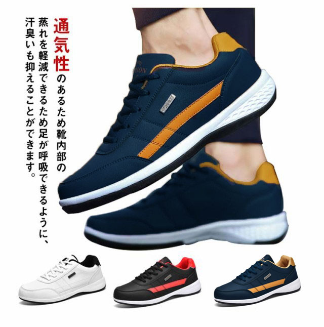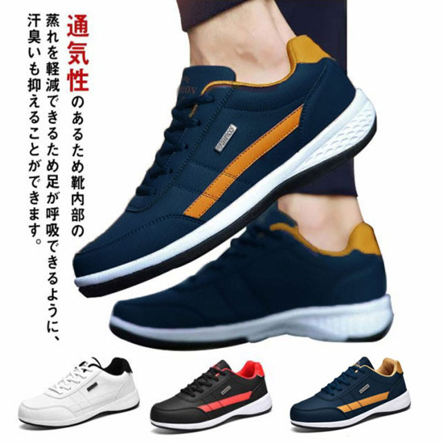スニーカー メンズ 防水 カジュアルシューズ カジュアルスニーカー レースアップ 幅広 ウォーキングシューズ 軽量 厚底 運動靴 紳士靴 合皮 撥水 ビジネス ランニング ゴルフ 歩きやすい 通勤 通学 中学生 24-29cm