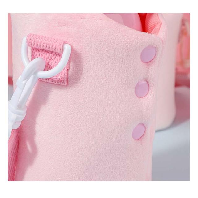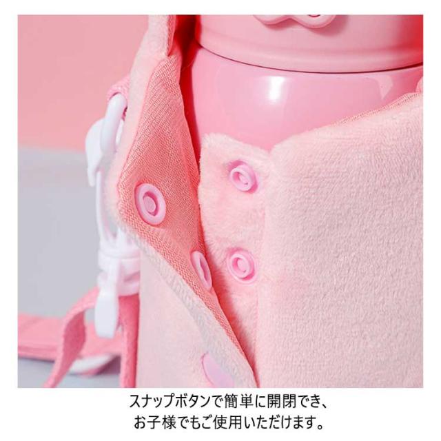 | 衝撃や傷からボトルを守る!もこもこ可愛いボトルカバー。 持ち運びに便利なショルダーストラップつき、両手をフリーになります。 スナップボタンで簡単に開閉でき、お子様でもご使用いただけます。 水外側がふわふわで触り心地のよい、ぬいぐるみ素材です。 内側は含気性のある柔らかいウレタンメッシュ生地で、水筒をキズや汚れから守ってくれます。 | |