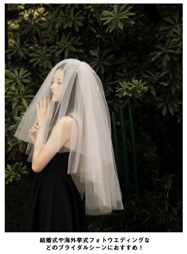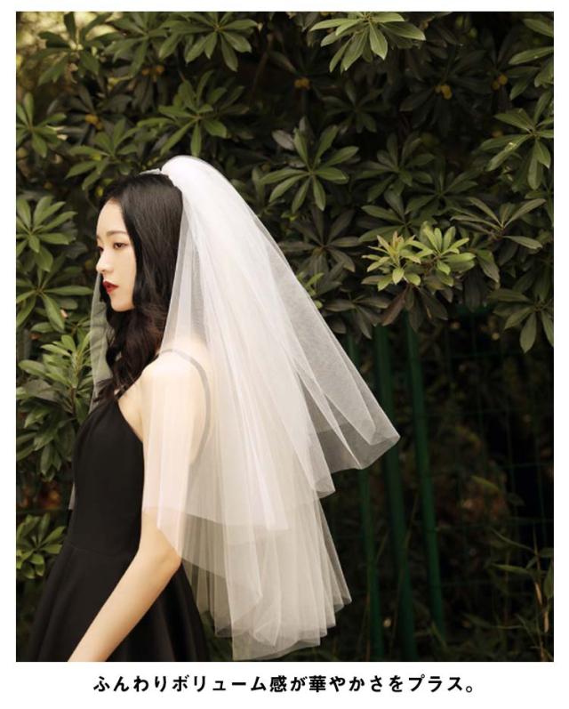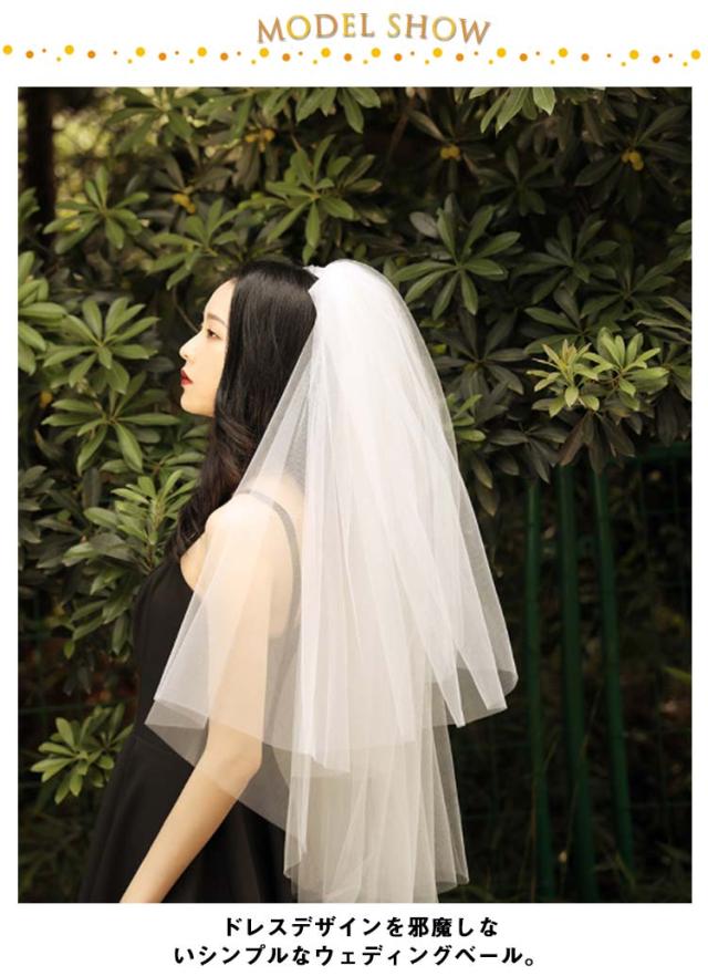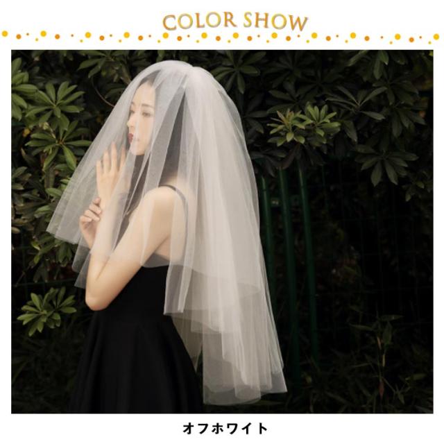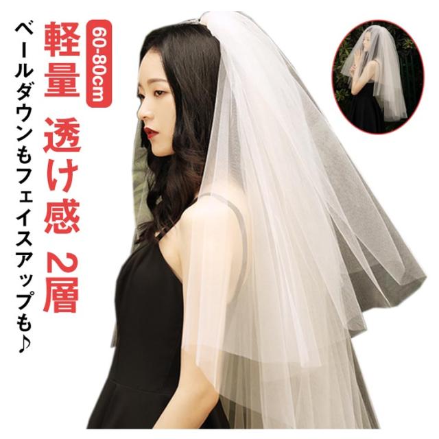 ウェディングベール ベール ミドル丈 結婚式 ベール 花嫁 ウエディングベール ブライダル ベール 60-80cm 送料無料 2層 ボリューム ベールダウン フェイスアップベール 装飾無し オフホワイト 透け感 チュール ショート 軽量 軽やか 撮影