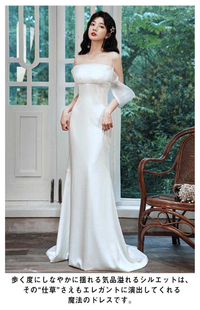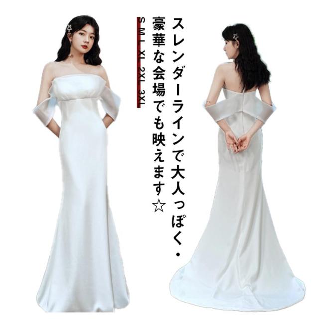 前撮り ドレス ワンピース ウェディングドレス チュール 肩出し オフショルダー 二次会 花嫁 エンパイア カジュアル ロングドレス エンパイアドレス レストランウエディング 後撮り パーティードレス 忘年会 結婚式 披露宴 演奏会