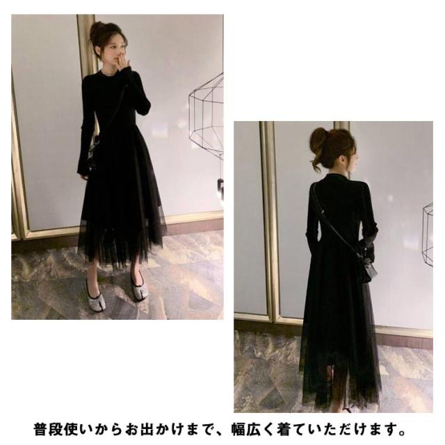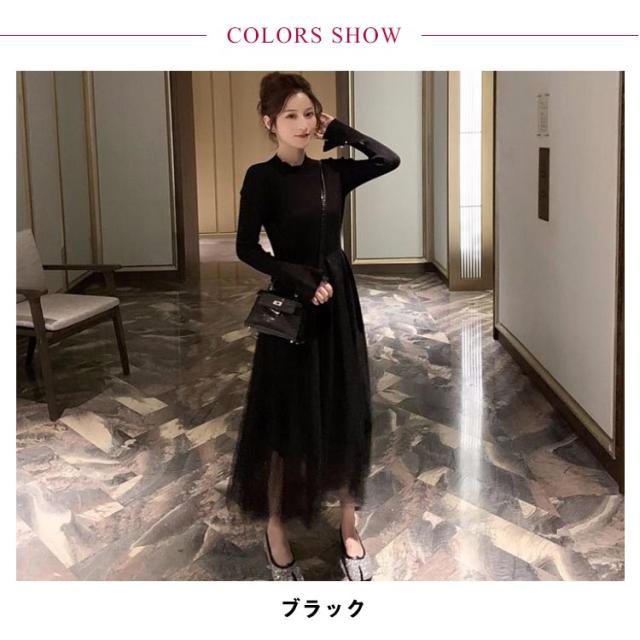 ワンピース レディース 長袖 チュール ロング丈 チュールスカート チュールワンピース 入学式 卒業式 ロング 切り替え フォーマル 無地 春 夏 秋 送料無料