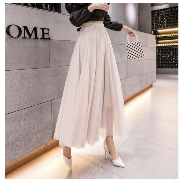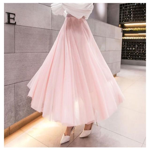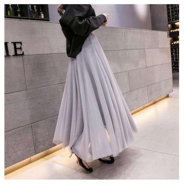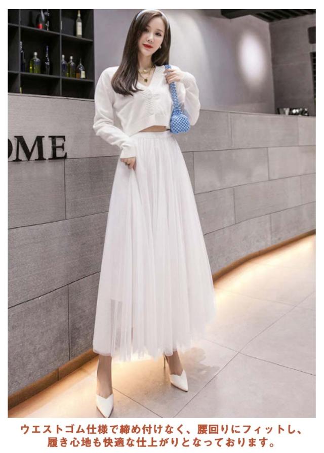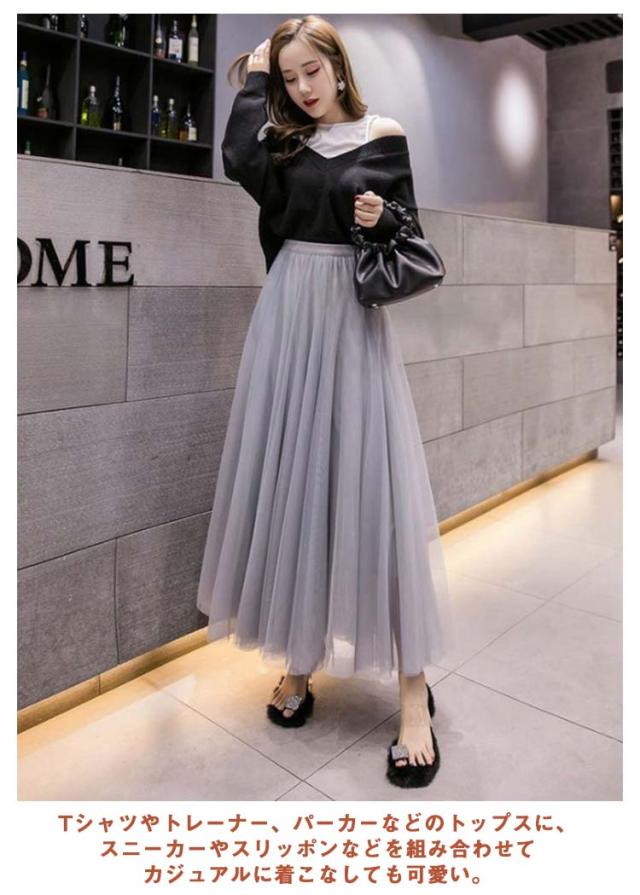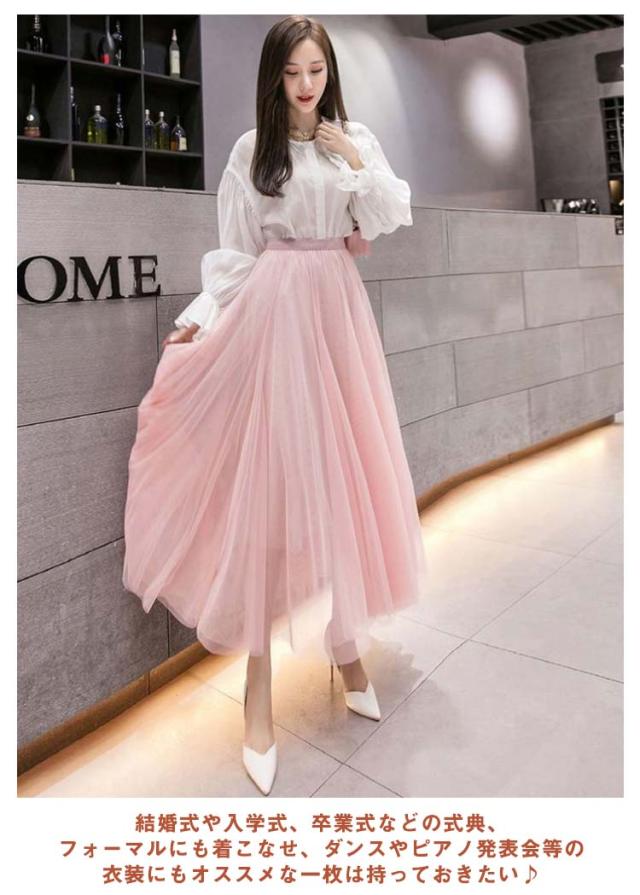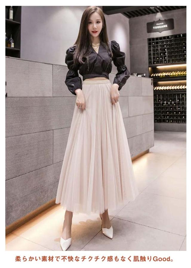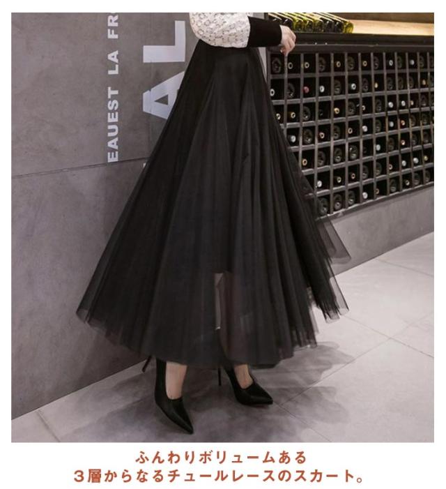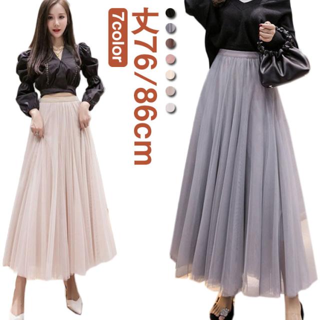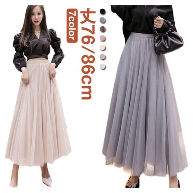 チュールスカート ロング スカート フレアスカート プリーツスカート 送料無料 ミディアム 86cm 76cm マキシスカート ロングスカート ミモレ丈 裏地あり ウエストゴム ブラック フレア マキシスカート パーティ 夏 春 お出かけ きれいめ 黒 グレー ピンク ホワイト