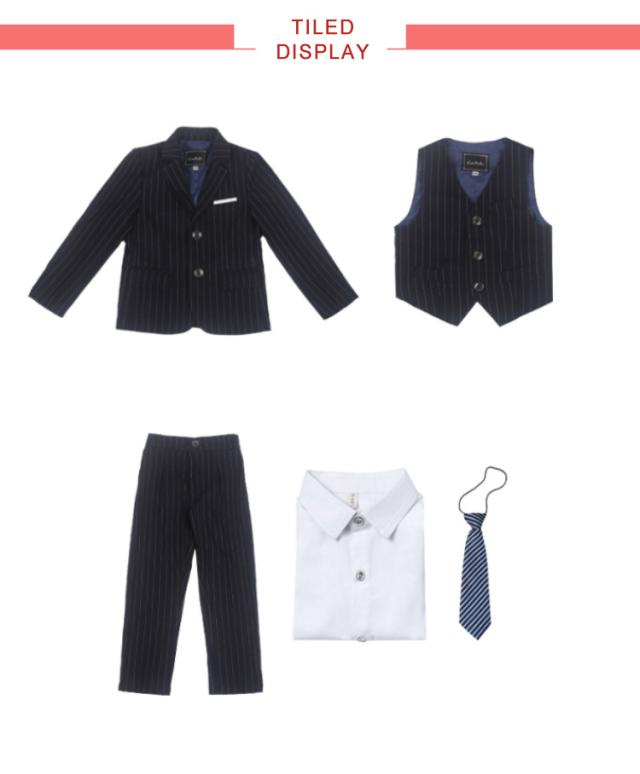 | 全体的にスタイルアップ出来るオシャレな1着です♪ ボリュームを持たせているので、甘くなりすぎずスタイル良く見せてくれます。 ウェストがゴム付き、とってもカンタンに着脱できます。 七五三や卒入学式、発表会、ちょっとしたお出かけや、冠婚葬祭までオールマイティーに使えるスーツセット ♪ セット内容:ジャケット、ベスト、シャツ、パンツ、ネクタイ | |