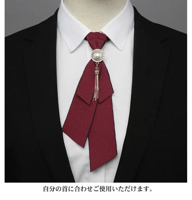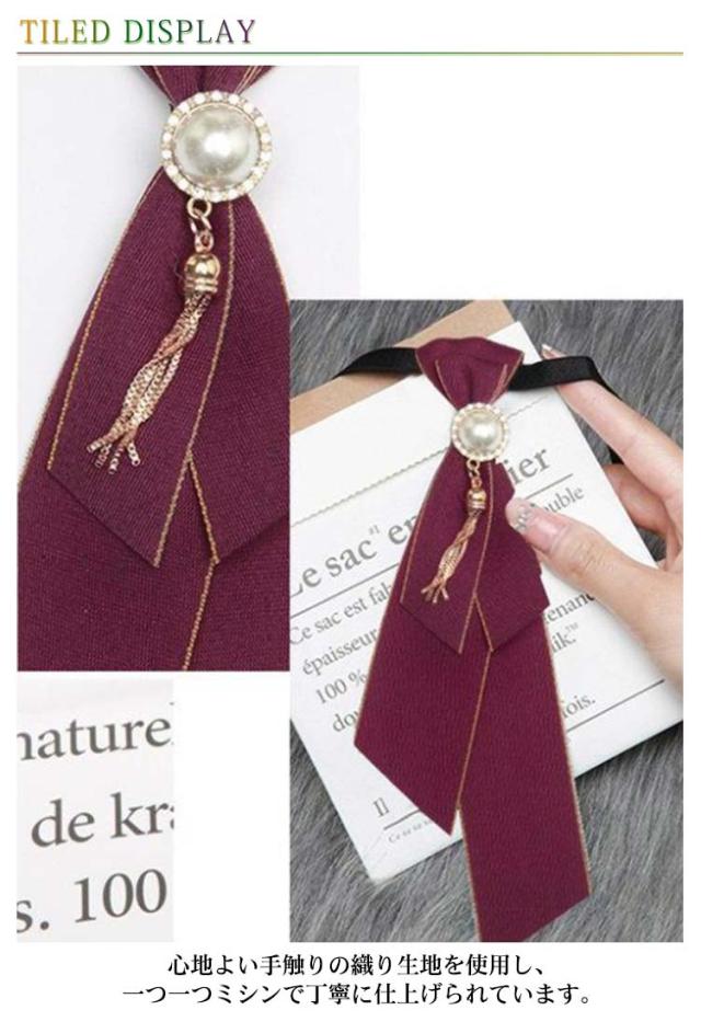 リボンタイ ネクタイ パール付き レディース 制服 リボン ユニフォーム フリンジ付き コスチューム 学生 フォーマル 大人用 結婚式 パーティー 発表会 コンクール 入学式 卒業式 入園式 卒園式