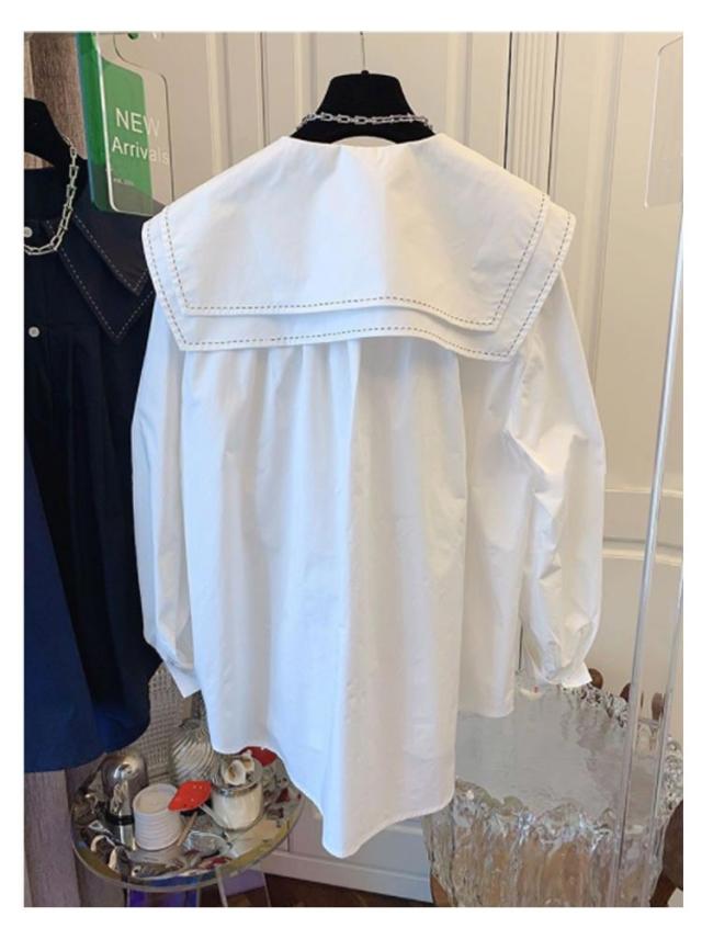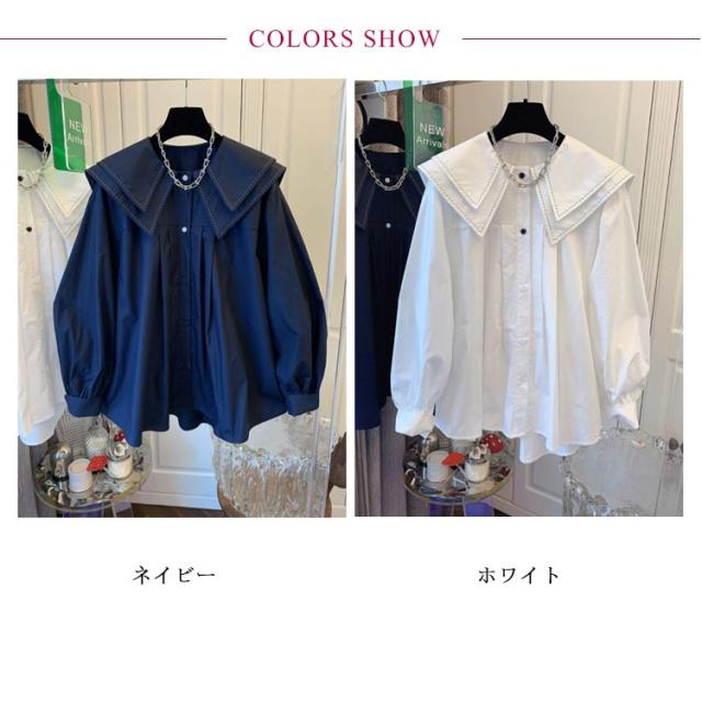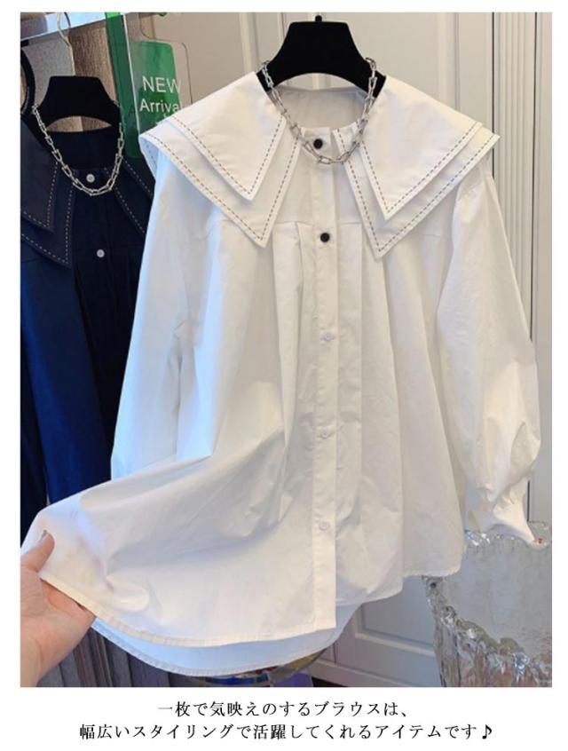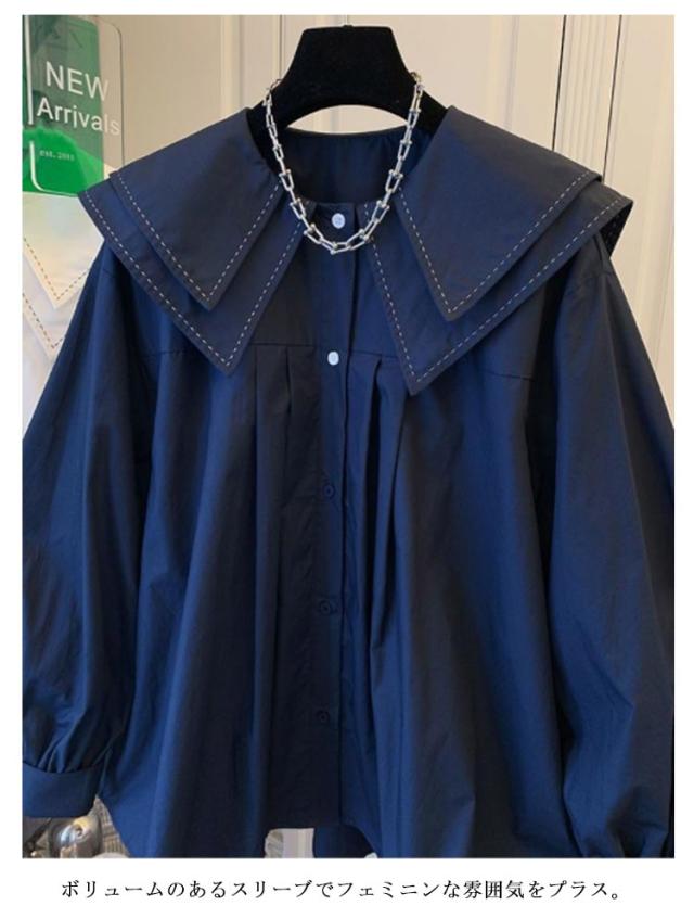 シャツ レディース 長袖シャツ ブラウス ダブルカラー セーラーカラー ビッグ襟 トップス シャツブラウス ゆったり タック ふんわり ボリューム袖 前開きシャツ ビッグカラー 大人 可愛い オフィス 春夏 秋冬 送料無料