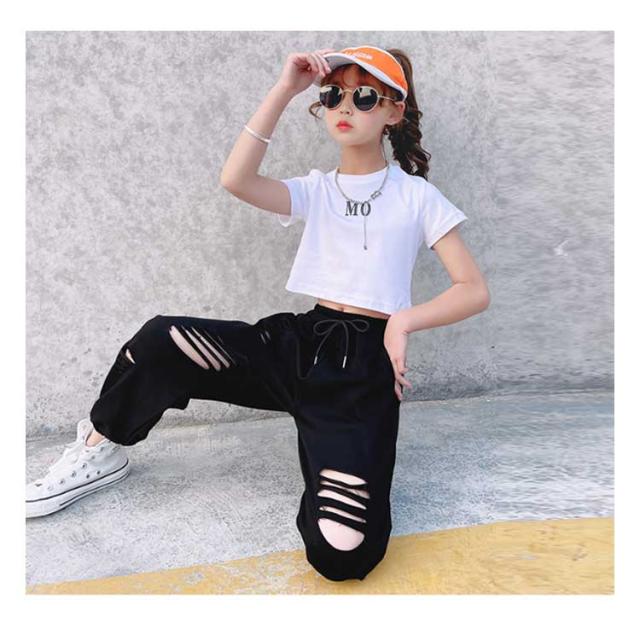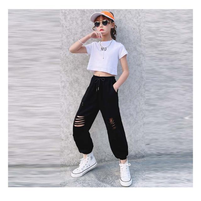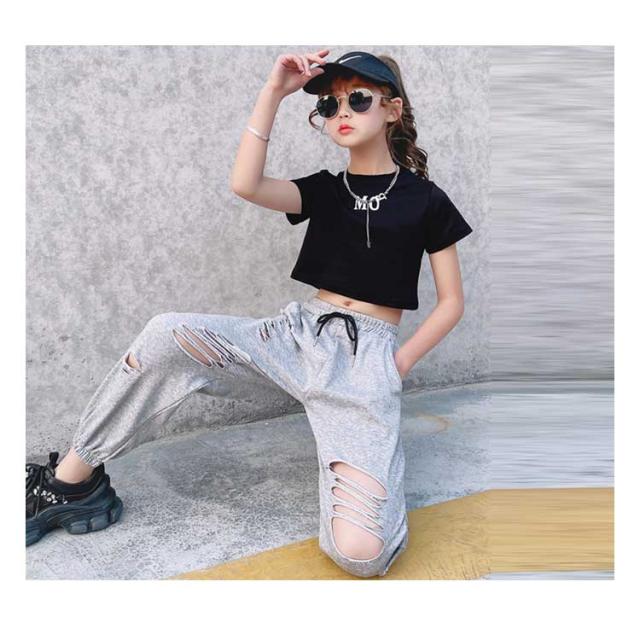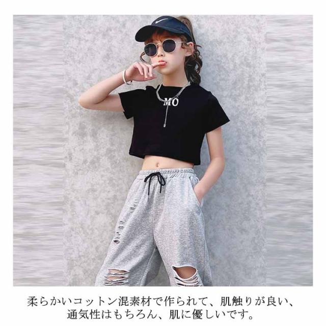 キッズ ダンス 衣装 ダメージ 女の子 ダンスウェア スウェットパンツ ゆったり ダボダボ パンツ ジョガーパンツ 黒 グレー 子ども ガールズ ヒップホップ hiphop ジャズ ダンス JAZZ 練習着 ストリート カジュアル