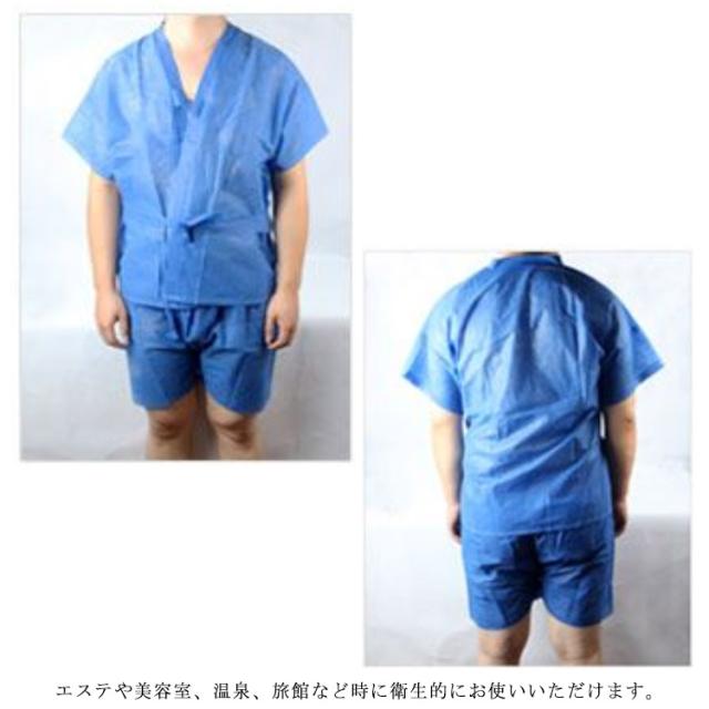 | 荷物にならず旅行、出張などに便利な使い捨てパジャマ。 甚平タイプなので、検査など時もとても便利。 エステや美容室、温泉、旅館など時に衛生的にお使いいただけます。 通気性よく、透けにくい厚手不織布素材なので、安心して着用できます。 | |