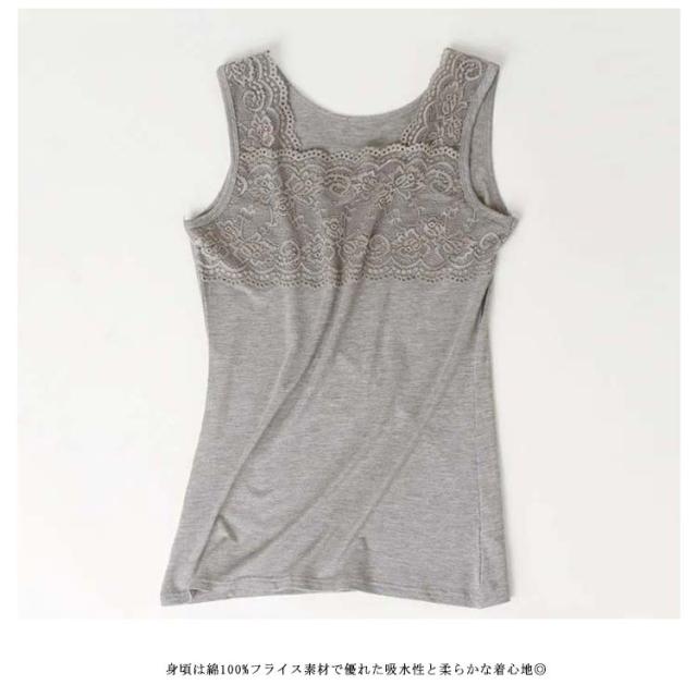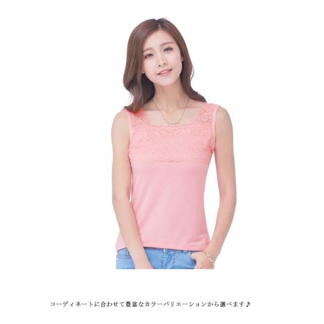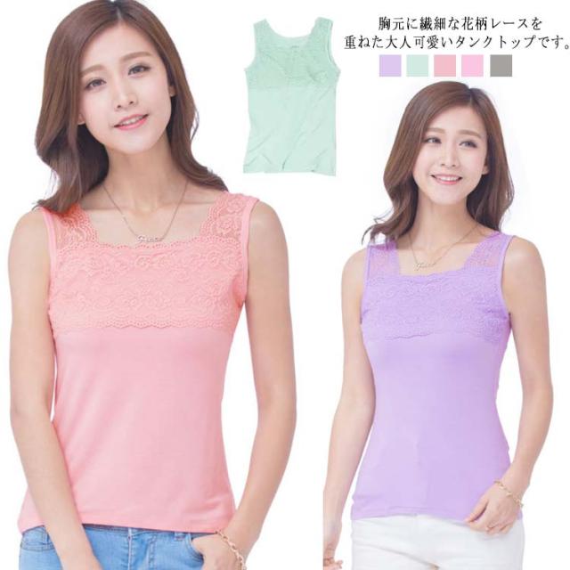 フロントフラワーレースタンクトップ タンクトップ レース レディース インナー トップス 花柄 レイヤード 重ね着 無地 春 夏 秋 冬 スクエアネック 大人 送料無料