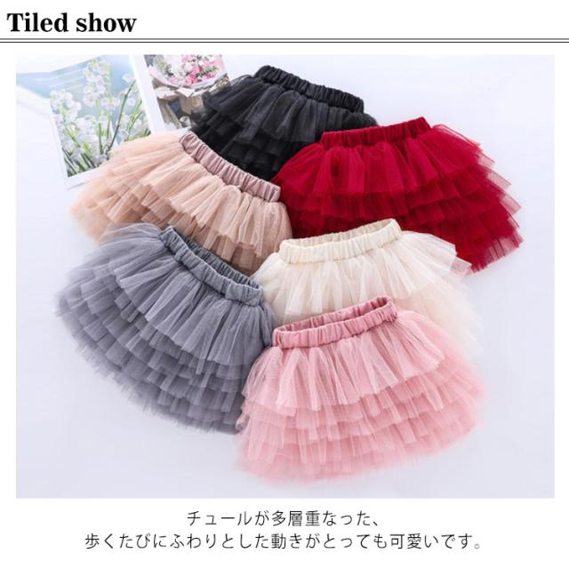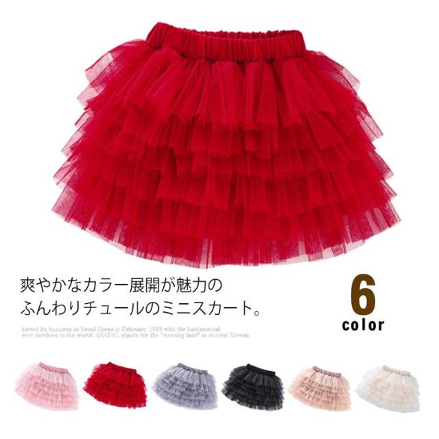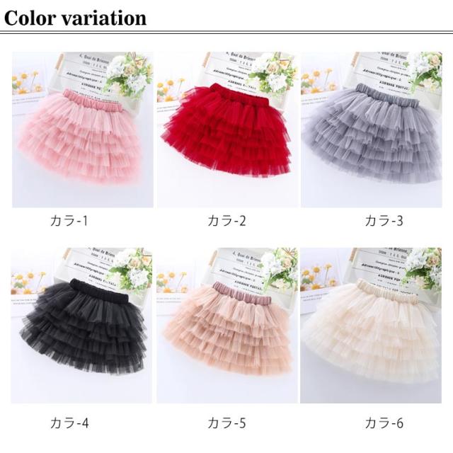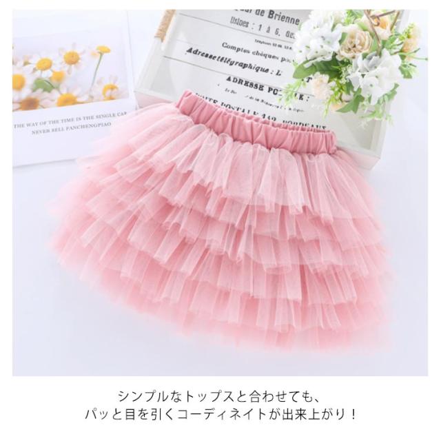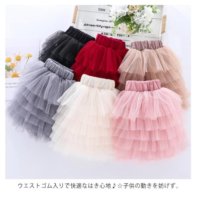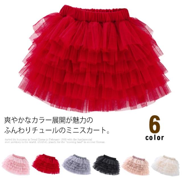 子供服 チュールスカート 6層 女の子 ジュニア チュチュ スカート パニエ 可愛い ふんわり プリンセス ウエストゴム キッズ服 お洒落 発表会 誕生日 通学 通園 ダンス衣服 送料無料