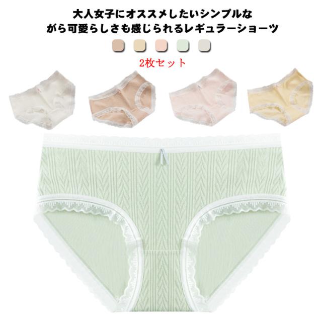 送料無料 2枚セット ショーツ スタンダードショーツ コットン レディース 女の子 女性用 インナー パンティ 下着 パンツ 無地 伸びる 可愛い レース リボン ストレッチ 締め付けない 快適 履きやすい シンプル おしゃれ 肌着 中学生 高校生