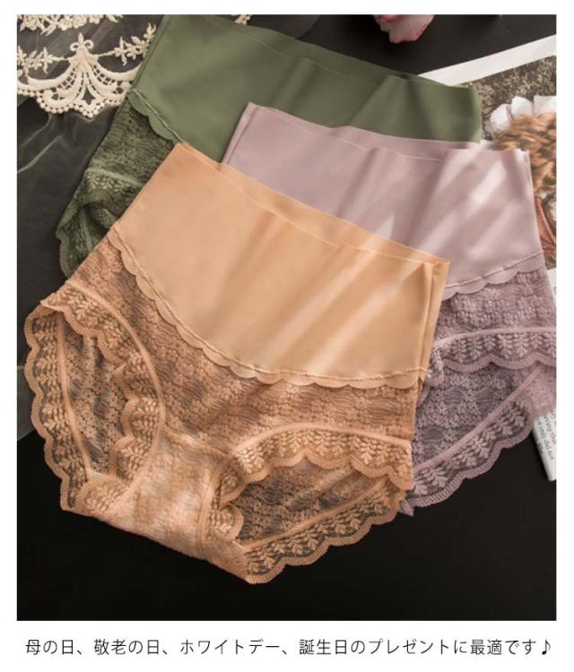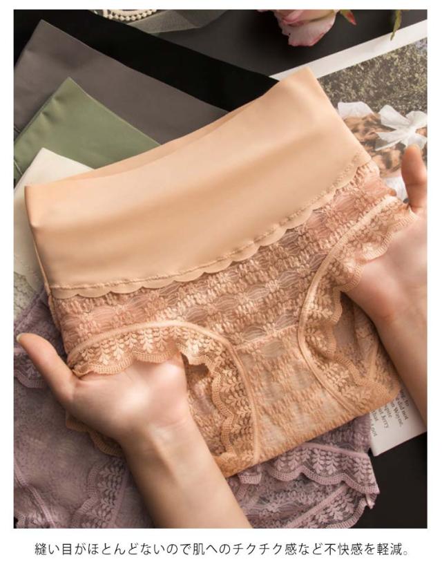 送料無料 3枚セット ショーツ シームレス ハイウエスト レースショーツ 総レース 花柄 ランジェリー 肌着 下着 インナー パンツ レディース 綿 コットン 柔らか ひびかない インナー ぽっこりお腹 おしゃれ 可愛い