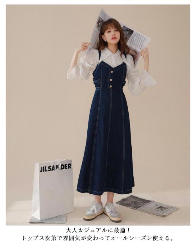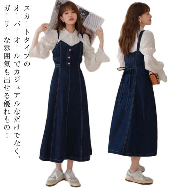 ジャンパースカート ロング丈 キャミワンピース 春 秋 ジャンスカ サロペットスカート ワンピース オールインワン 体型カバー Aライン カジュアル ミモレ丈 かわいい おしゃれ きれいめ 大人 可愛い 送料無料