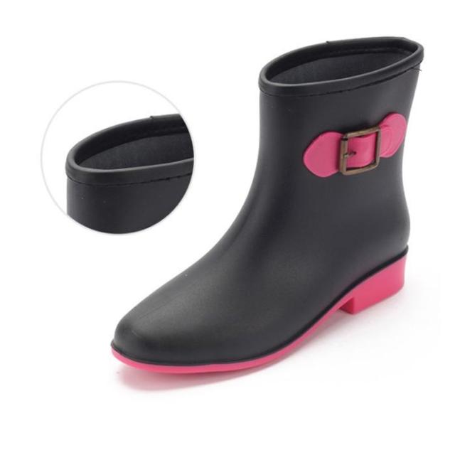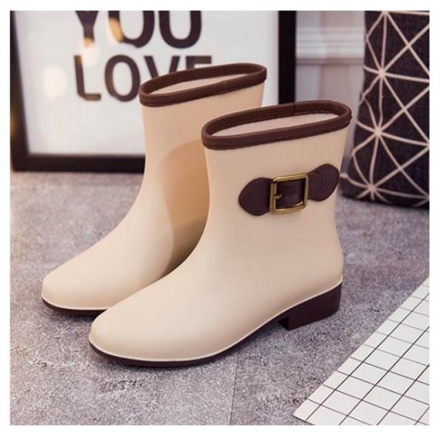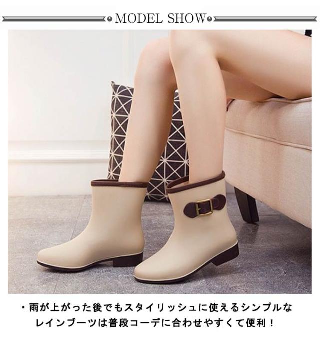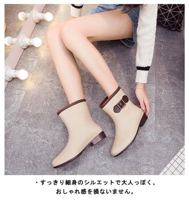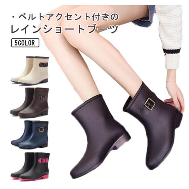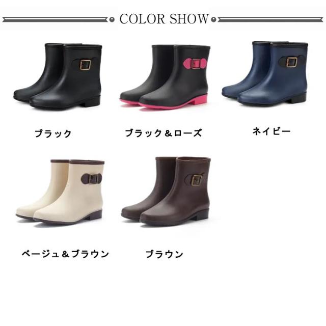 レインブーツ ショートブーツ レディース 防水ブーツ レインシューズ 靴 雨靴 長靴 ベルトアクセント付き 女性 滑りにくい 2.5cmヒール 配色切替 雨具 レイングッズ 歩きやすい レジャー 通勤 おしゃれ 全5色