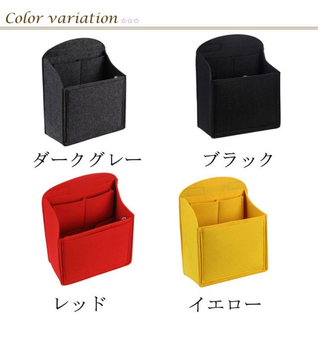 | リュックの中身が散らばらないように整理できる便利なバッグインリュック 厚手のフェルトを使用したリュック用のバッグインバッグです。 フェルト地だから軽量・きちんと自立。たくさんのポケットでバッグ内のごちゃごちゃも解決してくれる、便利なアイテムです。 リュックの中身がスッキリ、ポケットごとに収納出来て、取り出しもスムーズに。 通帳などの収納に便利な、ジッパーポケット付き。 パッグに合わせて、気分に合わせて、お気に入りのカラーを見つけてください♪ | |