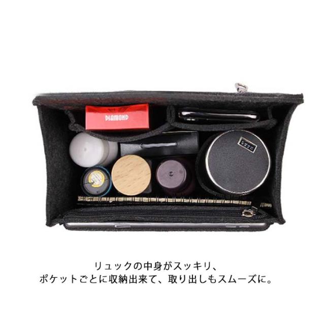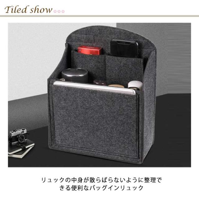 フェルト バッグインバッグ リュック 収納バッグ 縦 縦型 タテ型 軽量 整理 自立 マチ 大容量 リュック用 バッグ ポーチ 男女兼用 整理整頓 インナーバッグ 水筒入れ ボトルホルダー スマホケース キーホルダー おしゃれ 通勤 通学 ギフト 無地 送料無料