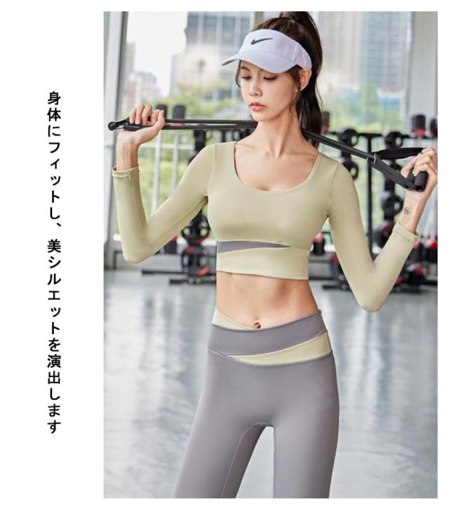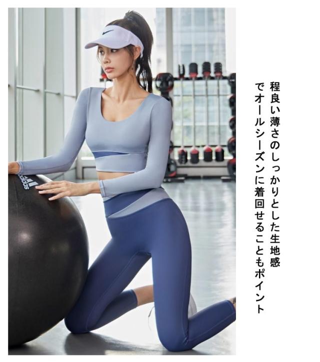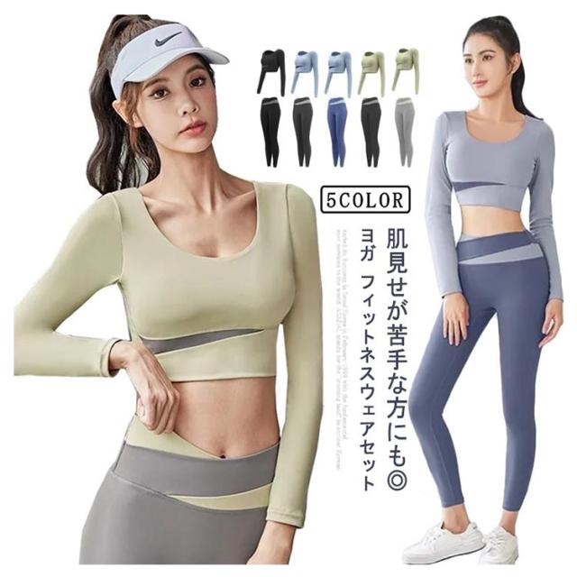 ヨガウェア 上下セット トップス 長袖 tシャツ トップス レギンス ホットヨガウェア 速乾 吸汗 伸縮 ストレッチ レディース スポーツウェア ジムウェア ハイウエストランニングウェアヨガ ホット ピラティス ダンス シンプル おしゃれ かわいい 運動着 春 夏 秋 冬 送料無料