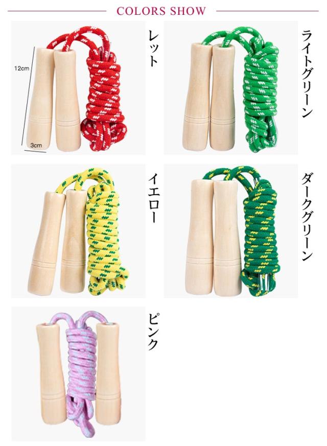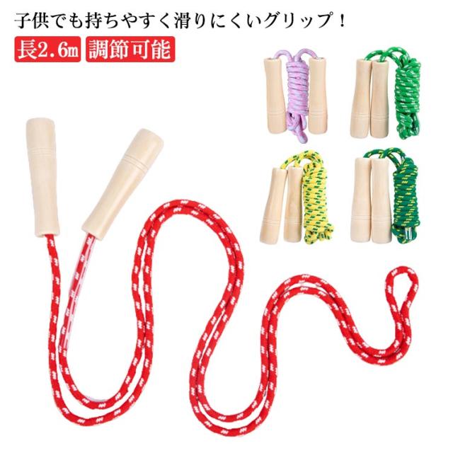 | サイズについての説明 | 縄長2.6m/ハンドル長12*3cm 【かんたん長さ調整】 グリップに収まっているロープを押し込んで引き出し、結び目の位置を変えるだけのかんたん構造。 お使いのジャストサイズに変更してお使いください。 |