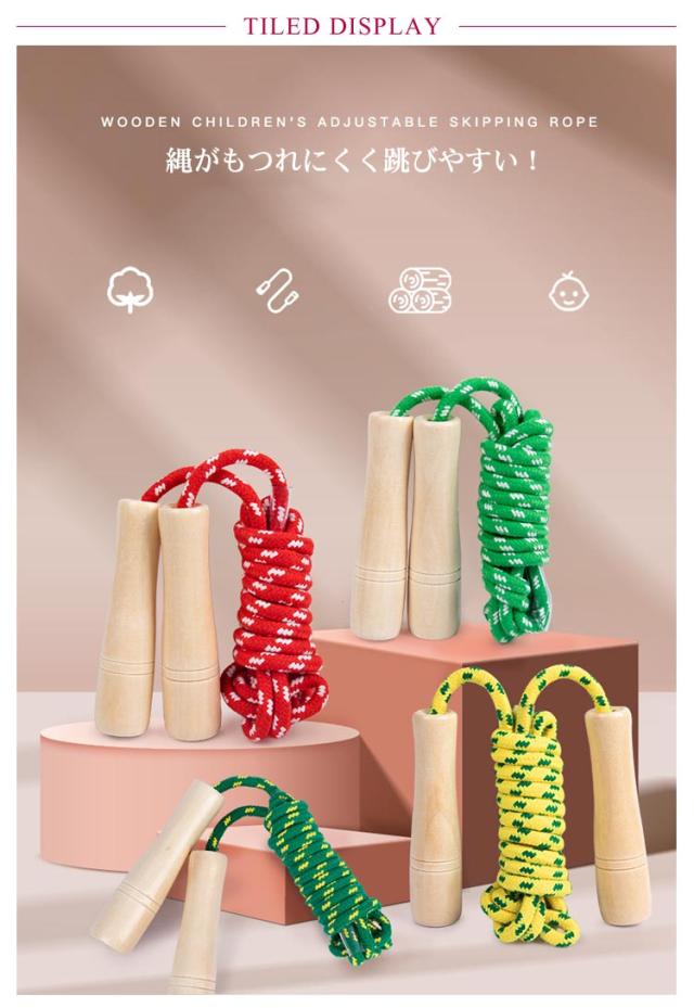 | 子供でも持ちやすく滑りにくいグリップ! 縄がもつれにくく跳びやすい! 頑丈で壊れにくい構造! 足に当たっても痛くなりにくい設計! 見た目がかわいく、お子様の気に入るデザイン! | |