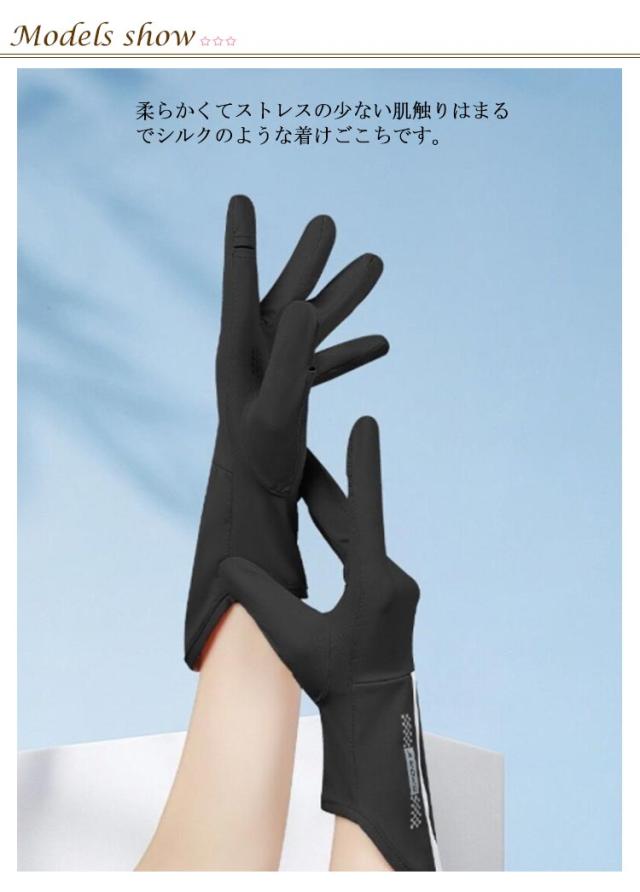 | これからの季節に大活躍!紫外線が気になる方には欠かせないUVカット手袋 柔らかくてストレスの少ない肌触りはまるでシルクのような着けごこちです。 着用時のピッタリ感を保ちつつ利便性も両立させるため、2指着脱構造を採用します。 安心して運転できるようにすべり止めがついています。 やや長めのデザインで手首までもしっかりカバー! 接触冷感素材で夏にもさらりとしたつけ心地を保ちます。 紫外線が気になる方には欠かせないアイテムです。 | |