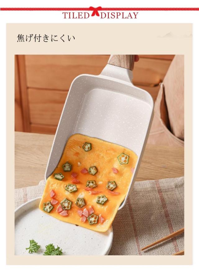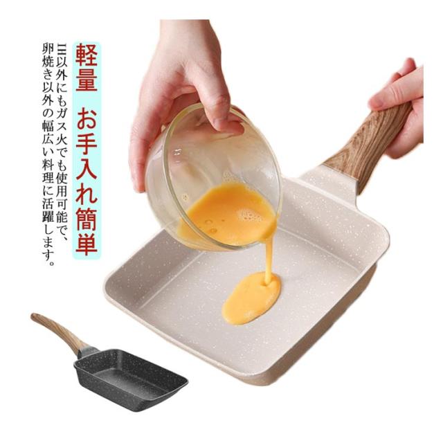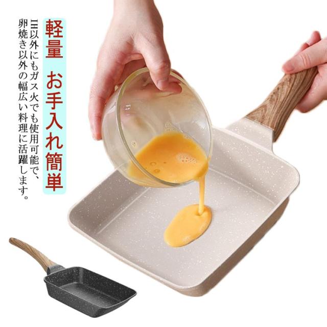 2色展開 四角いフライパン 卵焼き器 IH・ガス火兼用 一人暮らし 卵焼き 軽量 ih対応 フライパン 鍋 ガス火 スルスルすべる くっつくことがなく お手入れ簡単