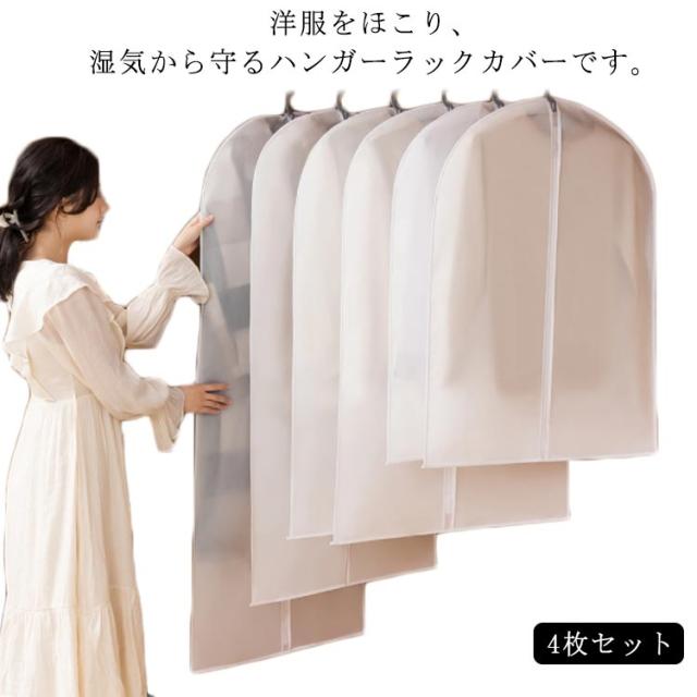 4枚組 コートハンガー 衣類カバー ほこりよけ カバー パイプハンガーカバー 衣類カバー 前開き ファスナー 防塵 防虫 防湿 防カビ 半透明 ダウン コート カバー ショート ロング スーツカバー 押入れ クローゼット コート アウター カバー 服 収納 袋