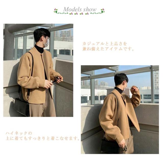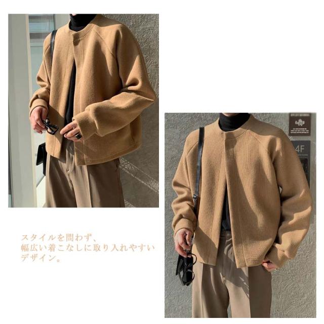 ノーカラージャケット メンズ カーディガン メンズ ショート丈 ニットカーディガン ニットトップス 長袖 セーター ブラック ベージュ シンプル 韓国ファション S M L XL 2XL 3XL