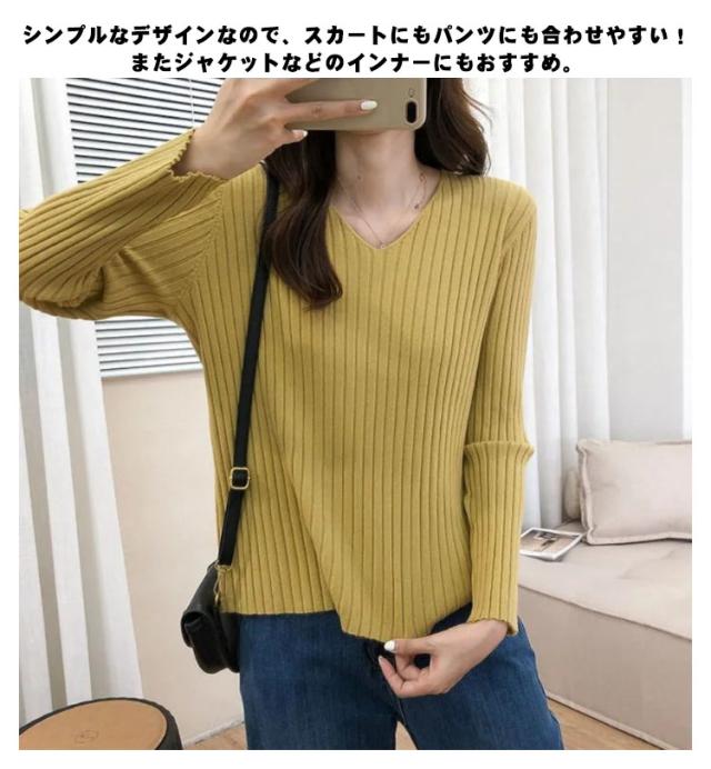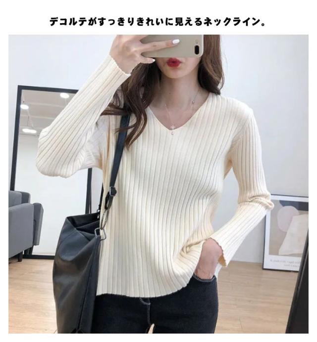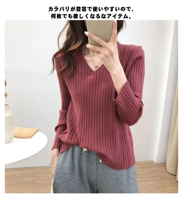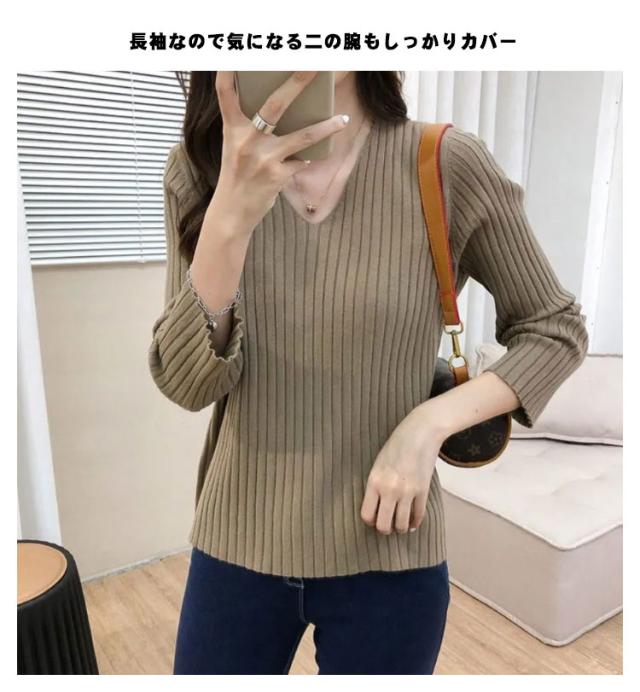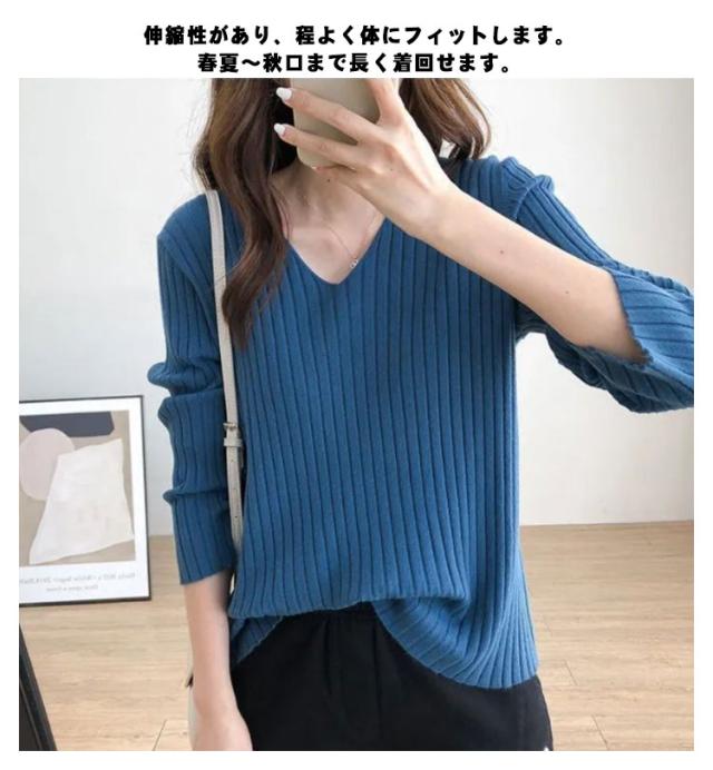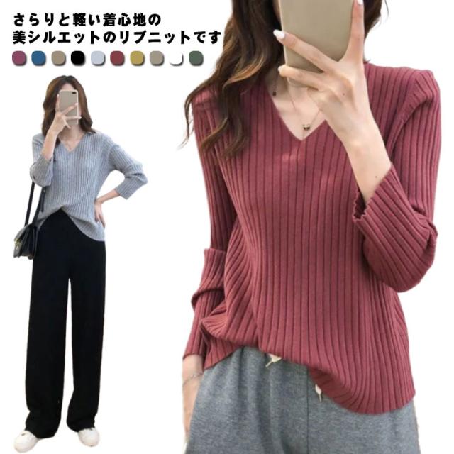 全10色×6サイズ!ニット レディース 春 セーター ニット 長袖 vネック リブニット トップス レディース ニット セーター 春 秋 サマー ニットトップス ニットtシャツ キレイめ 通勤 オフィス 送料無料