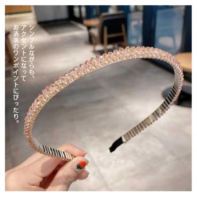 | キラキラ輝くラインストーンが並んだ、華やかなカチューシャ。 細身なシルエットなので華美になりすぎず、ヘアに馴染んでくれます。 シンプルながらも、アクセントになってお洒落のワンポイントにぴったり。 デイリー使いはもちろん、パーティーシーンにも活躍してくれそう♪ | |
