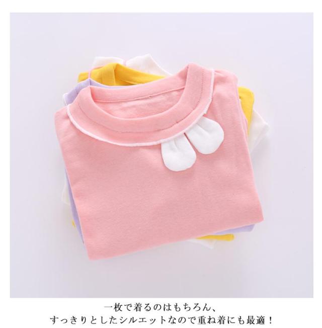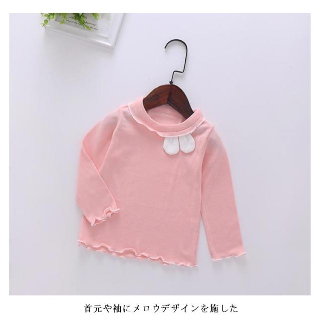キュートな兎耳のロンT キッズ tシャツ 長袖 インナー カットソー 子ども服 ロンT 肌着 インナーシャツ フリル メロウ キュート 女の子 子供服 小学生 春 秋冬 アンダーシャツ ストレッチ 伸縮性 薄手