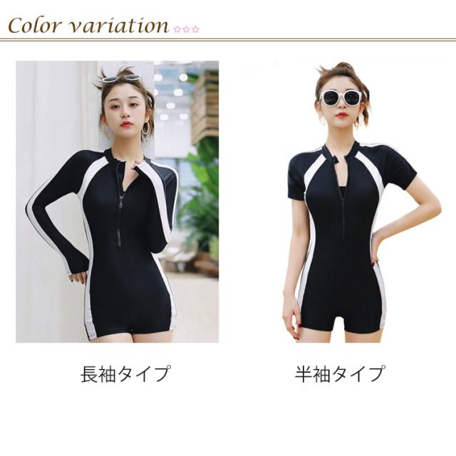 | 選べる袖丈!スポーティでシンプルのレディース水着 伸縮性と通気性に優れており丈夫で破れにくい素材を採用します。 フロントにファスナー仕様なので濡れていても着脱しやすい! 選べる長袖・半袖タイプ、ニーズに合わせてお選びいただけるにもうれしいポイント。 パッドの入り、もっと盛りたい!を叶える☆ 海やプールなど様々なシーンで大活躍してくれること間違いなし夏にピッタリの水着です。 | |