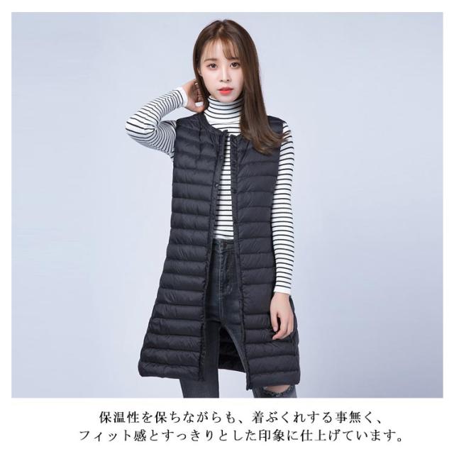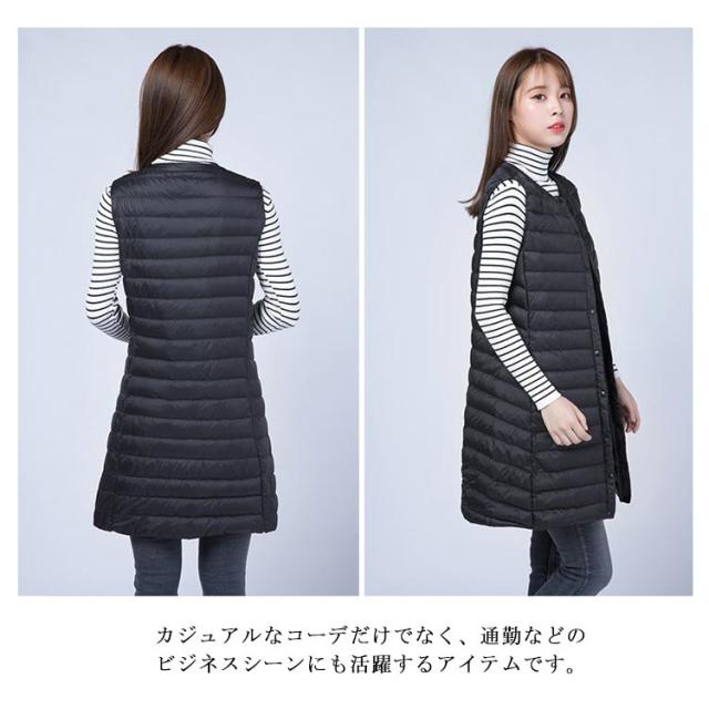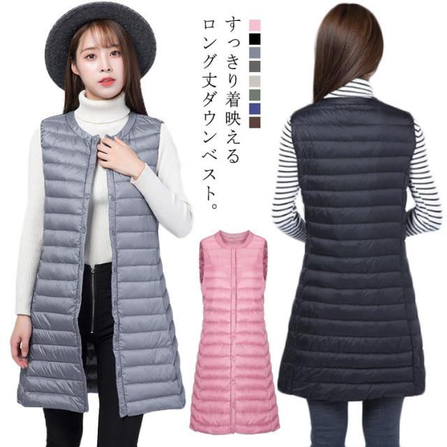 全8色×6サイズ レディース ロングダウンベスト ライトダウン ベスト スリム ロングダウンベスト アウター ポケット付き 大きいサイズ インナーダウン 大人カジュアル 春 秋冬 防寒 保温 軽量 薄手 20代 30代 40代 50代 60代