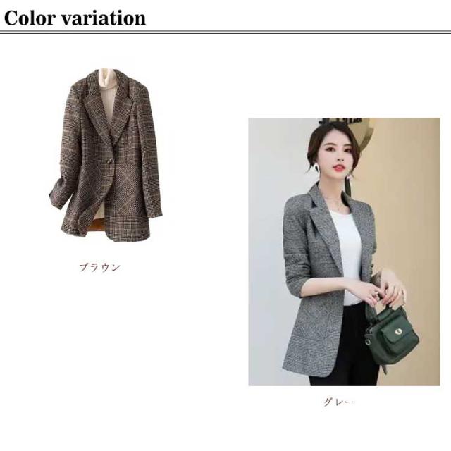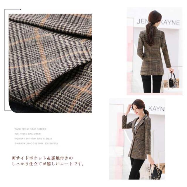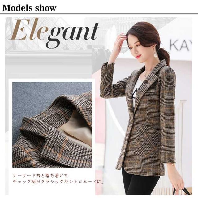 テーラードジャケット レディース 春 ジャケット チェック スプリングコート スリム 細身 ミドル丈 春 秋 アウター 裏地付き スーツジャケット 通勤 カジュアル オフィス 韓国ファッション おしゃれ【送料無料】