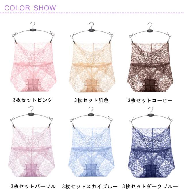 3枚セット 選べる10色×5サイズ レースショーツ レディース 総レース ショーツ シームレスショーツ ハイウエストレースショーツ ランジェリー 下着 シースルー セクシーショーツ 花柄 柔らか 透け感 ひびかない インナー 送料無料