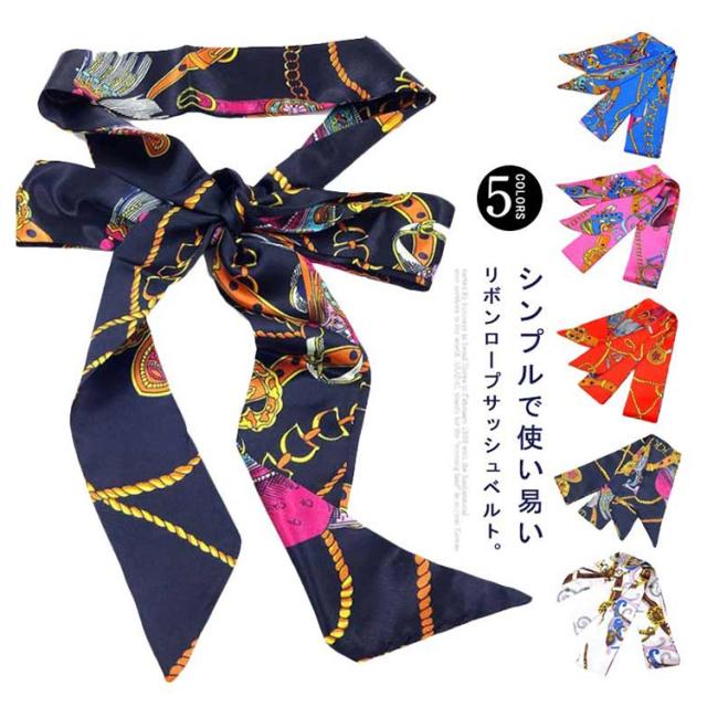 選べる5色 ベルト レディース リボンロープ ウエストマーク 飾りベルト 太ベルト スカーフ柄 シフォン ウエストマーク リボン 紐 ワンピース パンツ お洒落 プレゼント 贈り物 シンプル