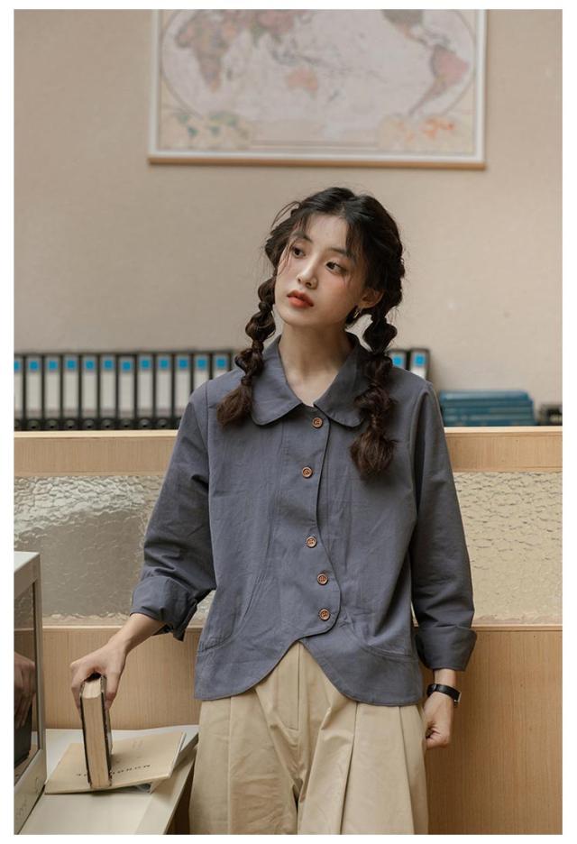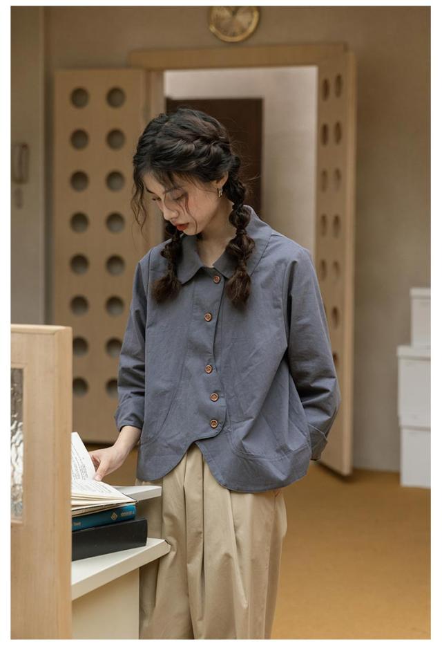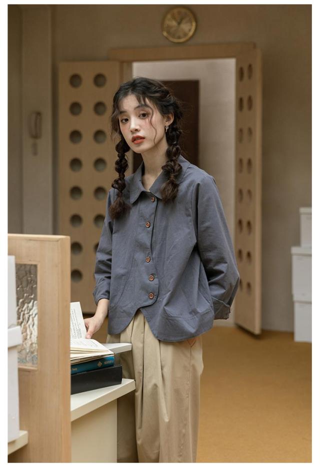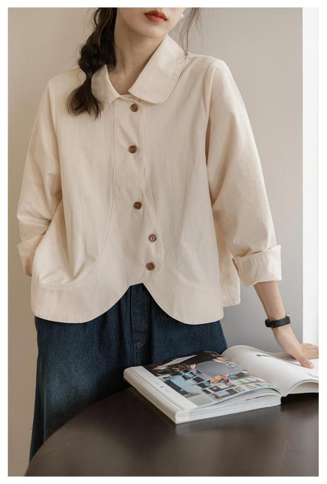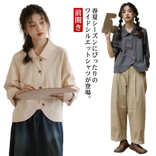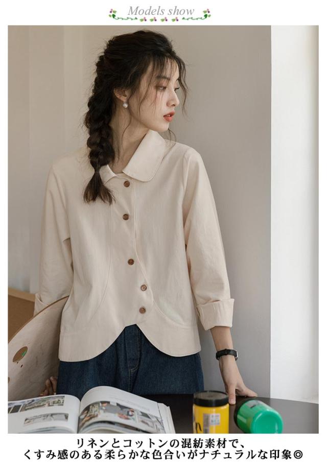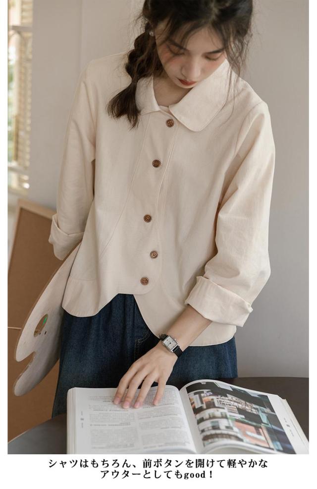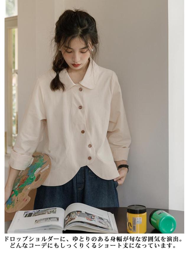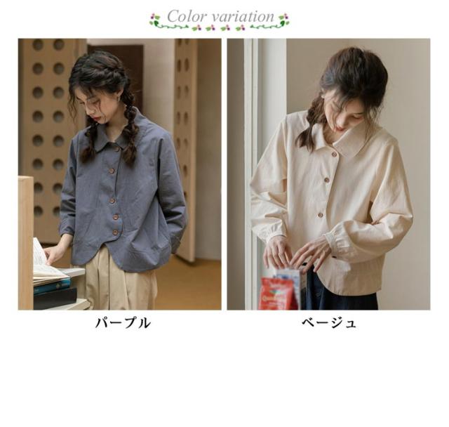 送料無料 シャツ ブラウス レディース チュニック トップス 長袖ブラウス ショート丈 ジャケット アウター 羽織り 折襟 前開き カジュアル 大人 可愛い 爽やか エレガント ガーリー 春 秋