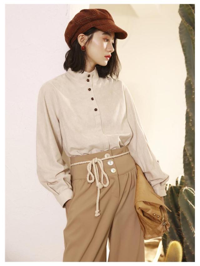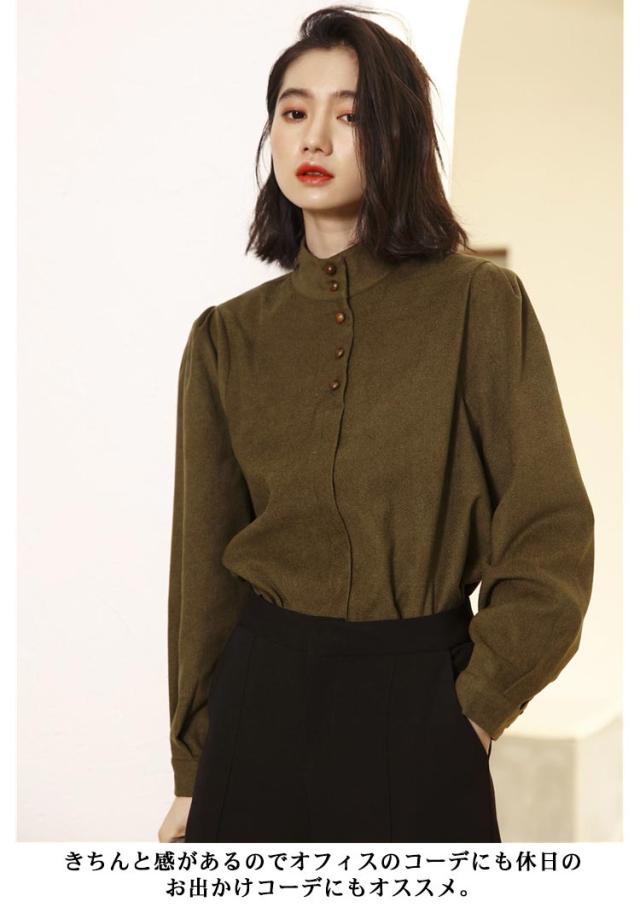 送料無料 シャツ ブラウス スタンドカラー ボリューム袖 ボリュームスリーブ 長袖 オフィス レディース ハイネック トップス おしゃれ 春夏 秋冬 きれいめ ハンドカラー 立ち襟 シンプル フォーマル 大人 通勤