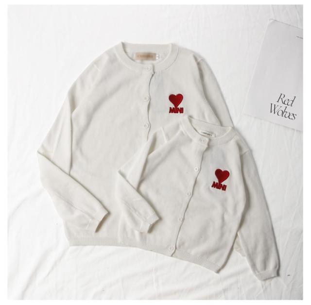 | シンプルなデザインで可愛いニットのカーディガン! 着心地がよく、軽いので長時間の着用も疲れません。 ワンポイントのハートは可愛らしく仕上がっています。 大人から子どもまでサイズ展開があります。 普段のコーデに取り入れやすいデザインとなっています。 | |