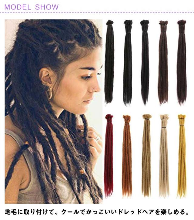 | 手軽にドレッドヘアが楽しめる♪ 地毛に取り付けて、クールでかっこいいドレッドヘアを楽しめる。 いつもと違う自分になってみるのも楽しいでしょう。 一本一本職人が丁寧に手作りした優れもの。 ヒップホップダンスやステージ、学園祭、ハロウィンコスプレなど様々なシーンで大活躍。 | |