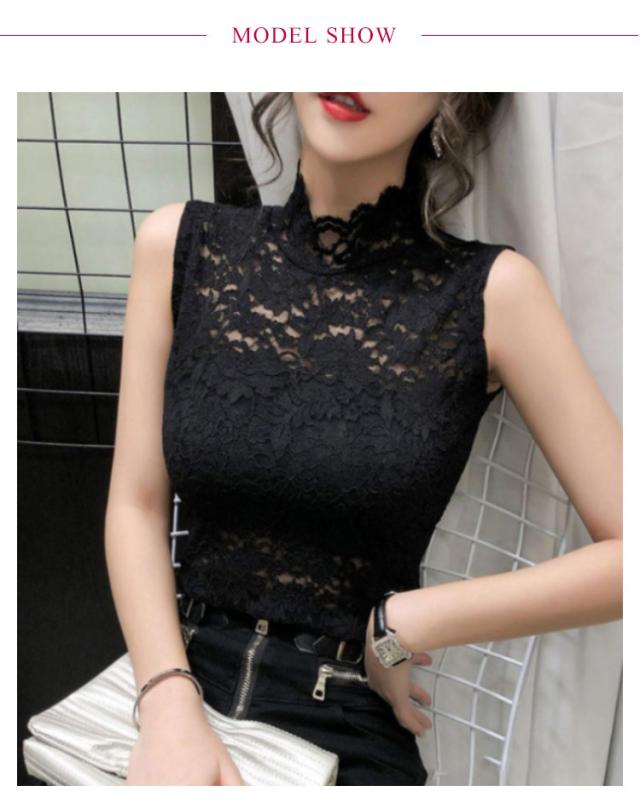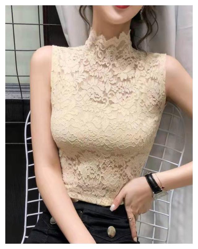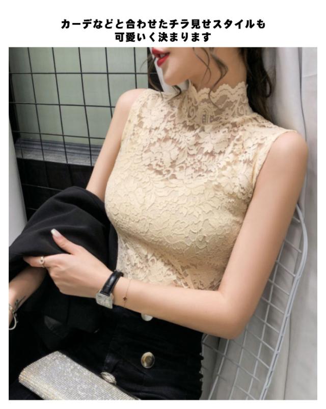 タンクトップ 総レース レディース インナー 花柄 セクシー トップス ハイネック カットソー Tシャツ ノースリーブ タートルネック エレガント 重ね着 ストレッチ 春夏 大人可愛い