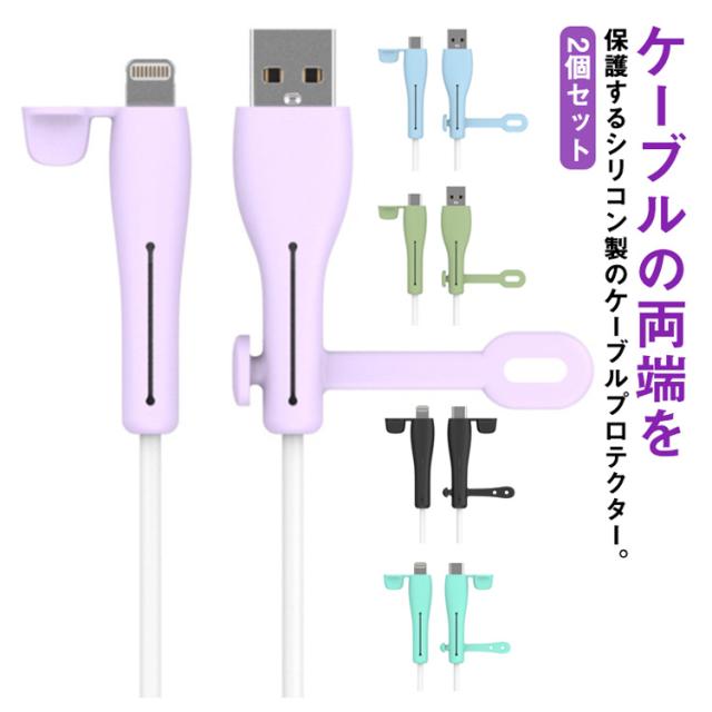 iPhone Android 充電ケーブル 保護カバー 2個セット フルカバー プロテクター 断線防止 ケーブル長持ち シリコン製 ケーブルカバー iPad ライトニングケーブル USB Microケーブル 折り防止 送料無料