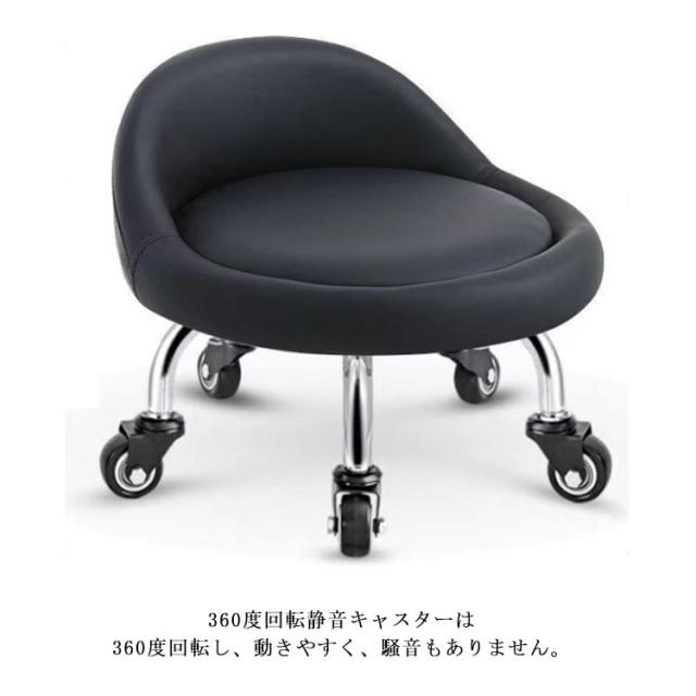 | 背もたれ&キャスター付きのロースツール。 クッション部分は厚み8cmとふかふかの座り心地です。長時間の作業にも疲れない構造になっています。 直径40cmのクッションと低い背もたれはより良い座り心地を提供します。 360度回転静音キャスターは360度回転し、動きやすく、騒音もありません。 椅子の最大耐荷重は100kgです。 見た目と質感を再現したPU皮革を使用しています。水や汚れに強く、お手入れもサッと拭くだけでとても簡単です。 | |