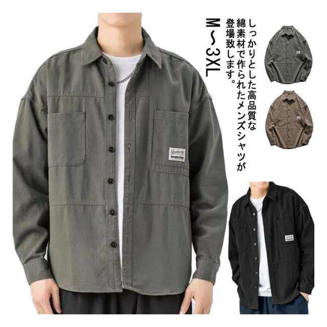 シャツジャケット ミリタリーシャツ ワークシャツ カジュアルシャツ コットン 大きいサイズ 無地 ジャケット コート カバーオール シャツ 長袖 メンズ ゆったり 長袖シャツ おしゃれ トップス アウター 春 秋 送料無料