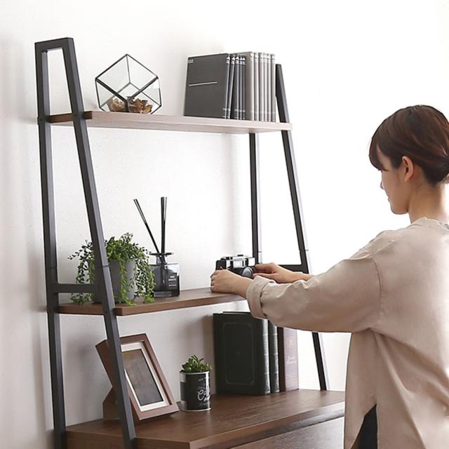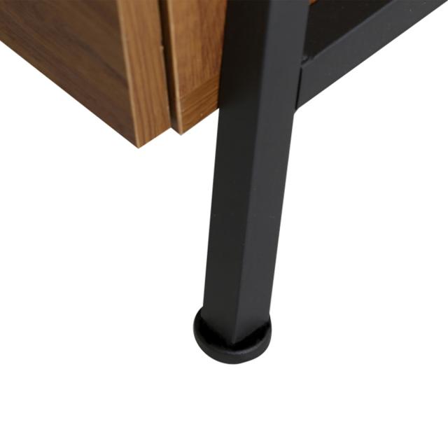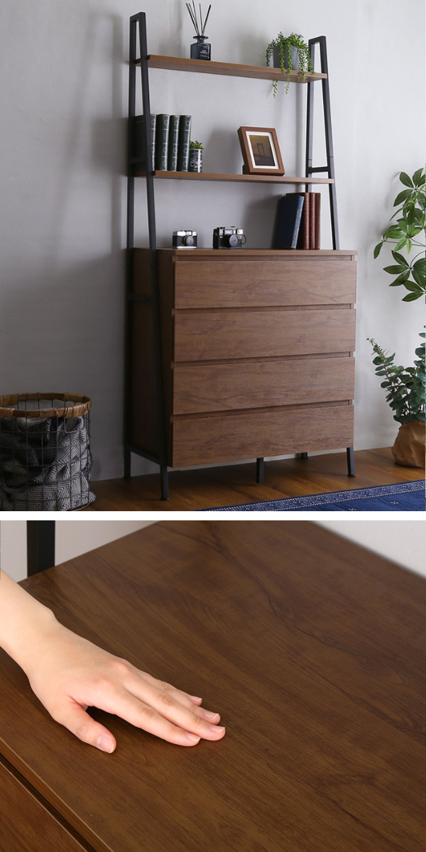 ヴィンテージの風合いを生み出す、木目調の表面材とざらつきのあるブラックアイアンスチールの組み合わせです。フレーム構造なので圧迫感を感じさせず、お部屋に馴染みます。
