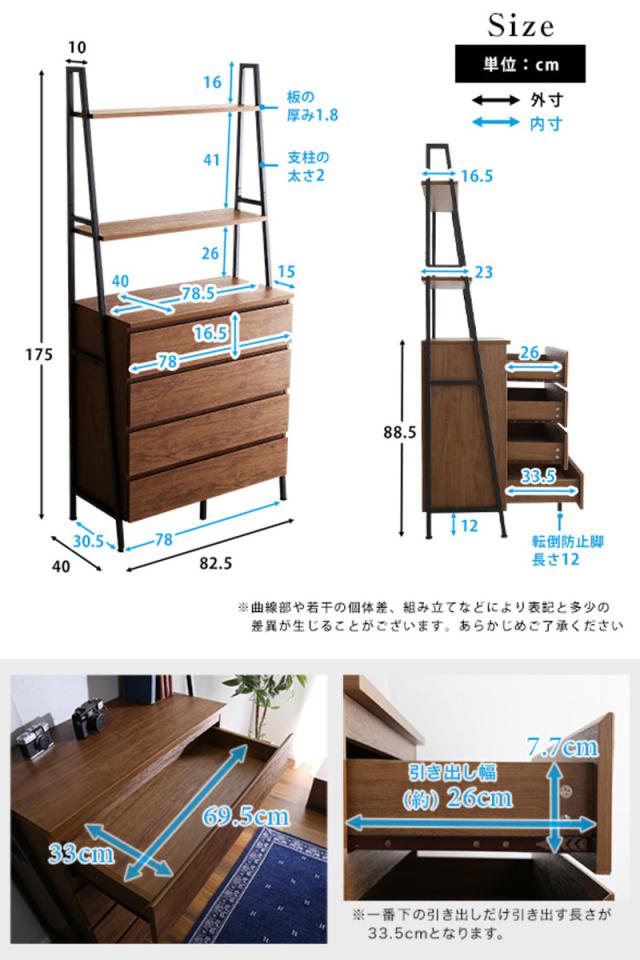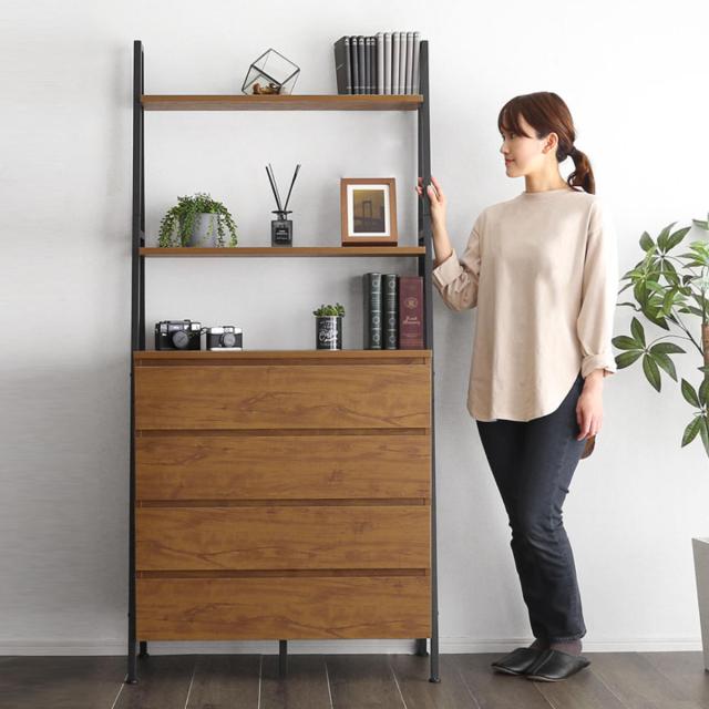 チェストラック 約幅82.5cm ヴィンテージ調 ワイドチェスト 4段 ( ラック 本棚 収納 家具 オープンラック リビング収納 リビング キャビネット ディスプレイラック 飾り棚 引き出し シンプル )