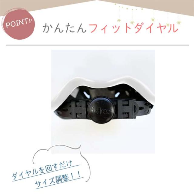 ダイヤルアジャスターの採用により、お子様の頭囲に合わせて簡単にサイズ調節が可能です。