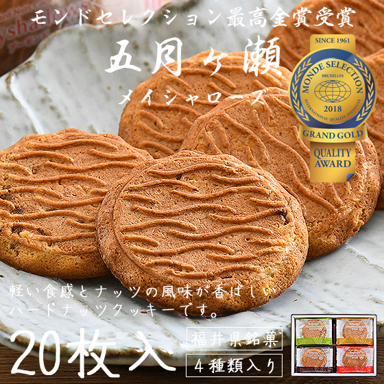 五月ヶ瀬 メイシャローズ 20枚入り(ココナッツ×5枚、ピーナッツ×5枚、アーモンド×5枚、カシューナッツ×5枚) クッキー 福井 お土産 さつきがせ 銘菓 お菓子 お歳暮 御歳暮 ギフト
