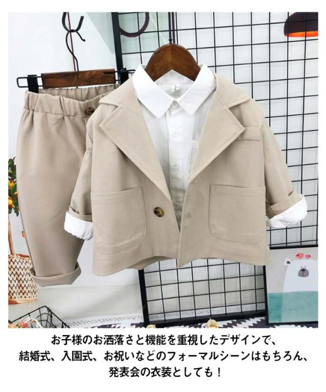 2点セット 子供服 フォーマルスーツ 男の子 子供スーツ 小学生 キッズ ベビー フォーマル キッズスーツ 七五三 男の子 スーツ 長袖 ジャケット ロング パンツ 2点セット ウエストゴム おしゃれ 子供服 卒業式 入学式 発表会 入園式 結婚式 スーツ 90/100/110/120/130