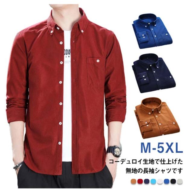シャツ メンズ コーデュロイシャツ ボタンダウン 長袖 シャツ 春秋 カジュアルシャツ 薄手 暖かい 羽織 アウター シャツジャケット 秋 冬 インナー トップス 大きいサイズ ビジネスシャツ カジュアル 無地 シンプル 春 秋 冬 送料無料 M-5XL